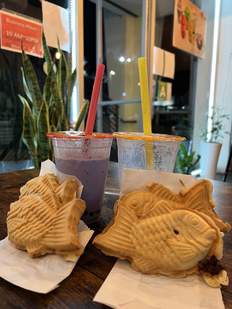 2 of the same filling per orderFish Shaped Waffle dessert with fillings.