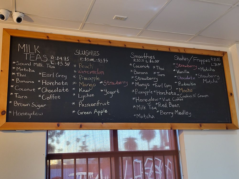 Introducing Boba Sound, a bubble tea spot located in Los Angeles, CA. With a wide variety of milk teas, smoothies, and slushies to choose from, Boba Sound offers something for every taste. Customers rave about the delicious flavors and quality of the boba, with options like matcha milk tea and strawberry banana kiwi smoothies standing out. The reviews praise the friendly service and welcoming atmosphere of the establishment, making it a favorite spot for many. The strategic location with easy parking and accommodating facilities like wheelchair access and gender-neutral restrooms make Boba Sound a convenient and inclusive choice for a refreshing drink. Come for the unique drink combinations and stay for the chill ambiance – Boba Sound is sure to leave you coming back for more.
